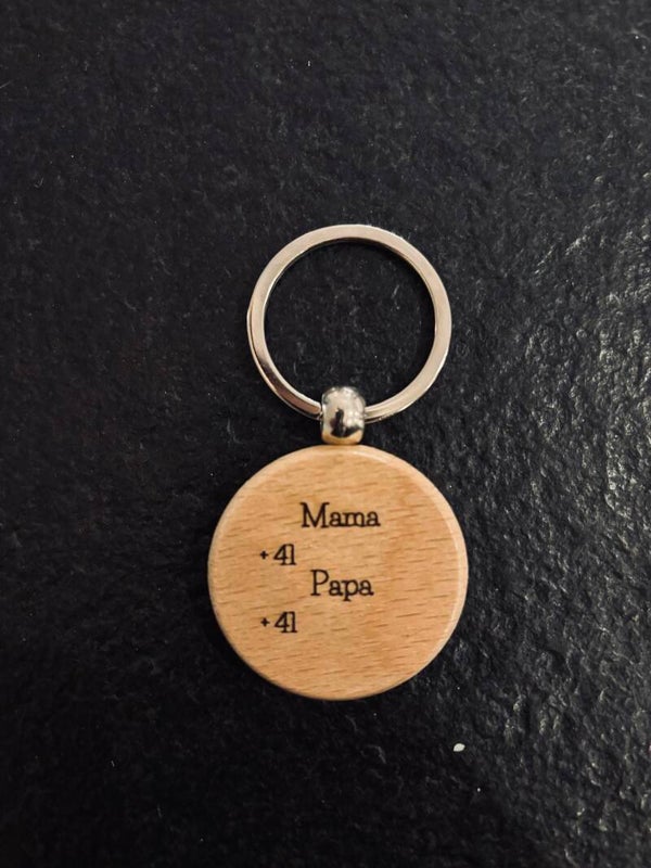 Falls dein Kind Hilfe braucht, ist deine Telefonnumer griffbereit. Der Holzanhänger eignet sich gut für an den Rucksack oder auch Gurtschlaufe. Vorderseite ein Motiv deiner Wahl, Rückseite die Telefonnummer.